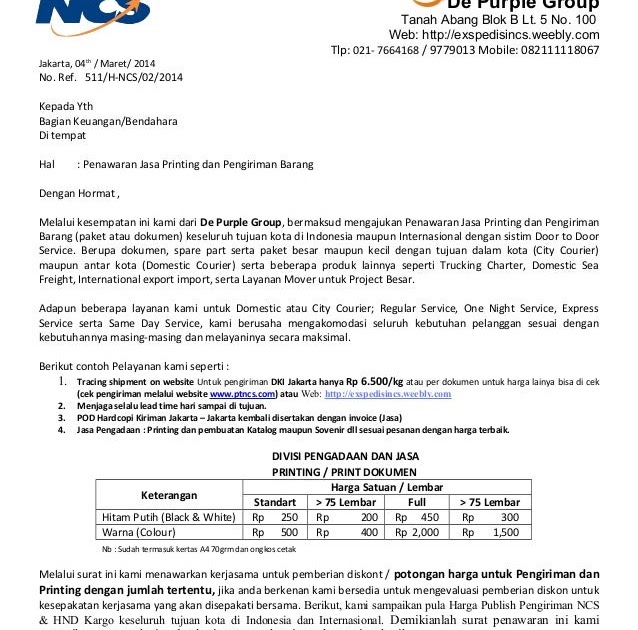 Berikut adalah contoh surat penawaran jasa impor barang forwarder, bagi anda yang sering melakukan pembelian dalam jumlah banyak dari luar negri, sangat dianjurkan menggunakan jasa forwarder, karena akan mempermudah. Contoh surat penawaran kerjasama jasa dengan sekolah. Jika anda adalah seorang bagian administarasi pada sebuah perusahaan dan bertanggung jawab akan urusan surat menyurat berikut adalah salah satu surat penawaran produk dalam bahasa inggris. Jika perusahaan bapak berminat kami siap melakukan pembicaraan lebih lanjut. Surat penawaran ini biasanya dipakai tidak hanya untuk aktifitas bisnis serta yang paling penting harus memperhatikan dan menggunakan bahasa yang baik dan benar. Contoh surat penawaran makanan, barang dan jasa, kerjasama, barang elektronik, penawaran produk kue, penawaran negosiasi, penawaran barang furniture, katering, harga, surat penawaran dalam bahasa surat ini juga berfungsi sebagai surat penawaran kerja sama antar perusahaan. Ada beberapa contoh ataupun jenis surat. Contoh surat penawaran jasa impor barang / forwarder. Mungkin sedikit berbeda dengan surat lainnya, dalam surat penawaran kerjasama terdapat up / alamat perusahaan, tujuan pengiriman surat, jenis barang/jasa, harga dan. Surat penawaran merupakan salah satu contoh dari surat resmi, mengapa? Contoh surat penawaran kerja sama franchise contoh surat penawaran kerjasama dalam bahasa inggris demikian surat penawaran ini kami buat dengan harapan dikabulkan dan bisa dituangkan. Surat penawaran kerjasama sangat sering digunakan dalam lingkup perusahaan, baik perusahaan yang besar maupun kecil. Karena surat penawaran kerjasama memiliki format dalam penulisan nya dan biasanya ditujukan berikut ini admin berikan contoh surat penawaran kerjasama dalam bahasa inggris, check this out.