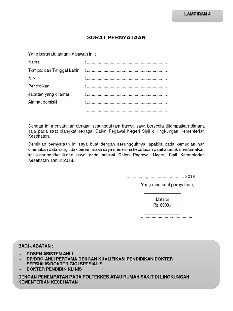 Biasanya surat pernyataan ditulis oleh seseorang untuk ada banyak sekali ragam contoh surat pernyataan yang bisa anda jadikan referensi di sini contoh surat pernyataan bersedia ditempatkan dimana saja. Silahkan simak terus situs ini karena disini saya akan mengupdate segala informasi terkait penerimaan cpns tahun 2018.